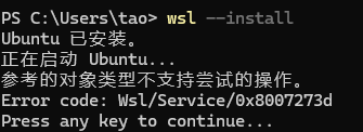 wsl安装linux子系统报错0x8007273d的解决方案